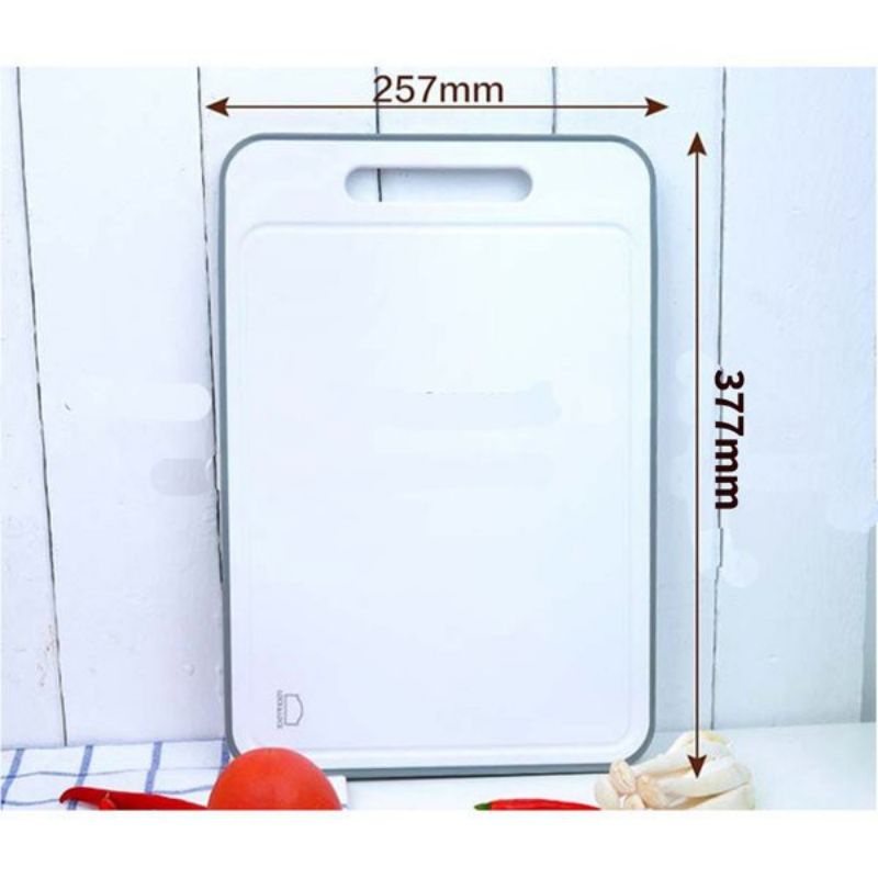 - Ở mặt sau, thớt được làm từ nhựa kháng khuẩn cao cấp và có thể được sử dụng để cắt thái trái cây, rau củ, thực phẩm ...