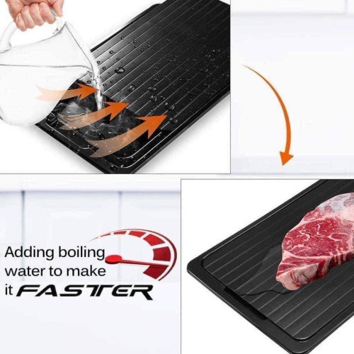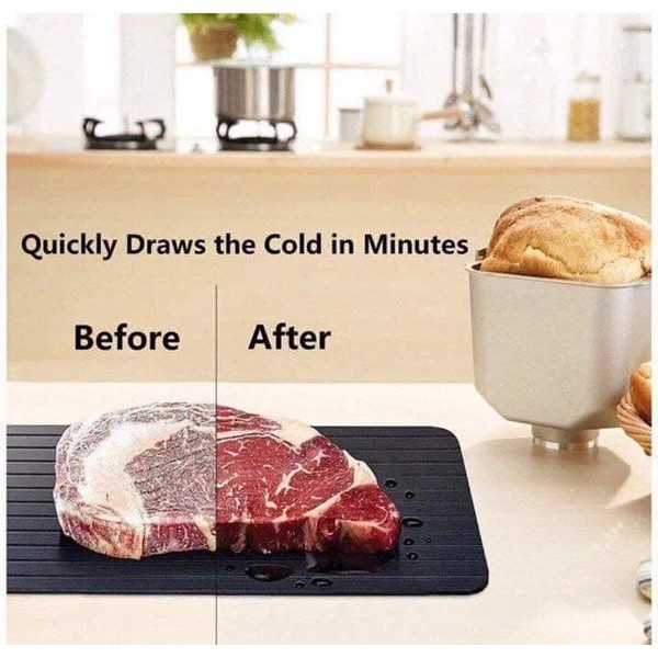 - Chất liệu nhôm và thiết kế các khe rãnh dưới đáy thớt sẽ dẫn nhiệt nhanh chóng từ thớt và không khí tự nhiên giúp làm tan đá thực phẩm