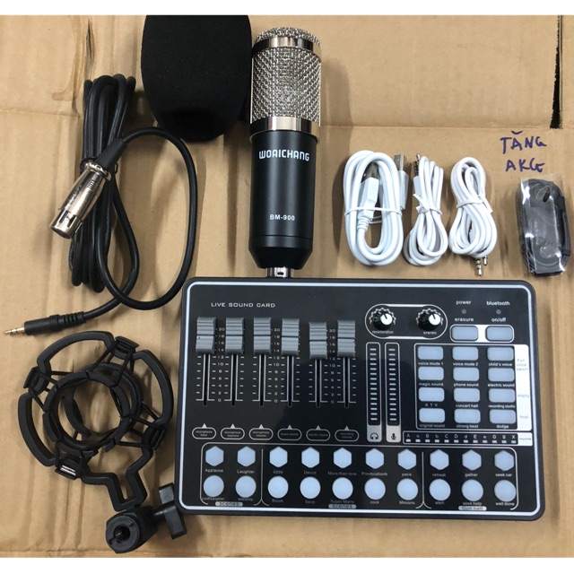 ***Combo Đơn giản 3 món đủ để hát hò live quá tuyệt vời1. Soundcard H9 có dây live dây lấy nhạc dây kết nối máy tính phiên bản quốc tế tiếng anh