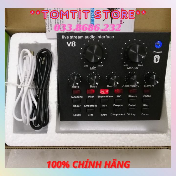 Sound card thu âm V8 là sản phẩm card âm thanh tương thích với nhiều thiết bị như smartphone, laptop, pc, máy tính bảng. Với tính năng làm méo giọng hát, thành giọng trẻ em, người già, Khả năng chèn các hiệu ứng âm thanh vào các đoạn thu như tiếng vỗ tay, tiếng hò reo, nhạc cổ vũ, tiếng chim kêu... với 12 hiệu ứng âm thanh, sẽ đem lại cho bạn trải nghiệm thu âm vô cùng thú vị.