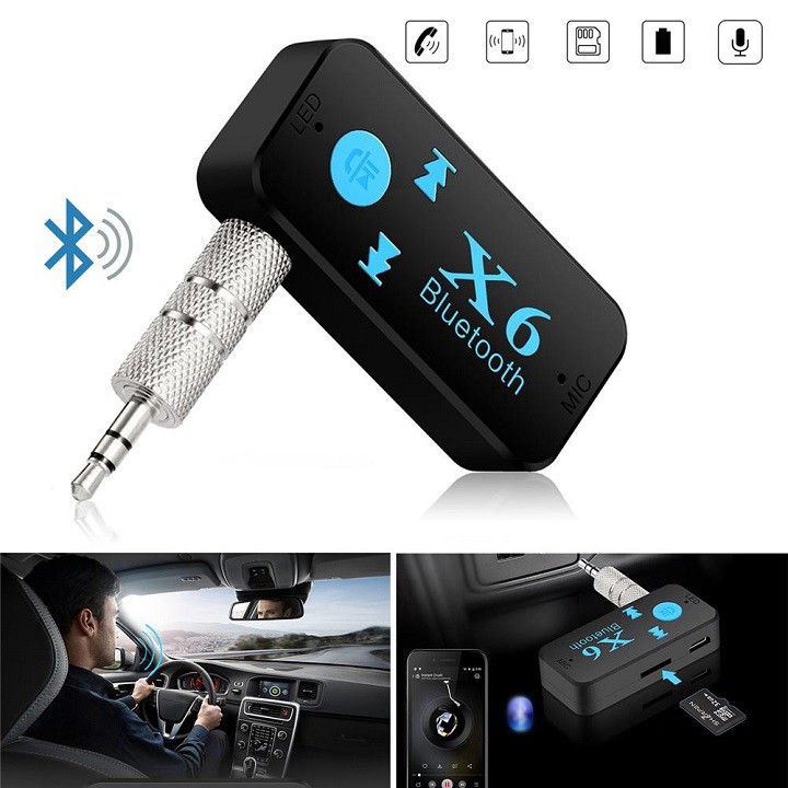 Bộ thu âm thanh Bluetooth BT-X6 kiêm phát nhạc Cho Xe Hơi- Loa- Amply- Hỗ Trợ Chơi Nhạc Trên Thẻ Nhớ- Có Mic Thoại