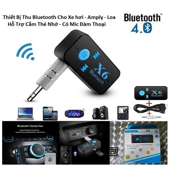 Thiết Bị Âm Thanh > Máy nghe nhạc > MP3 & MP4 || Bộ thu âm thanh Bluetooth BT-X6 kiêm phát nhạc Cho Xe Hơi- Loa- Amply- Hỗ Trợ Chơi Nhạc Trên Thẻ Nhớ- Có Mic ThoạiCòn hàng