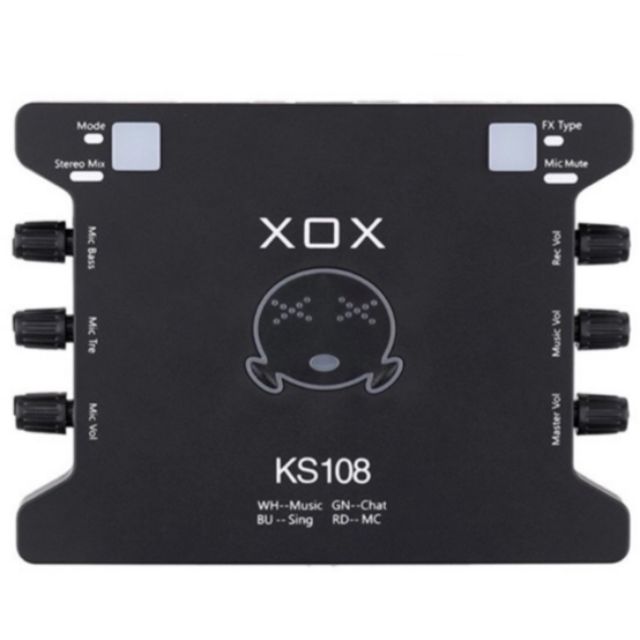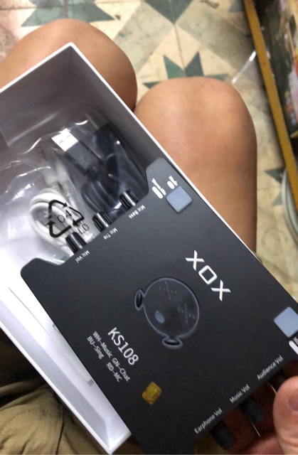 - Sound Card XOX KS108 - Cáp Nguồn - Tặng Kèm dây hát điện thoại - Sách hướng dẫn sử dụng tiếng anh - Tem chứng nhận bảo hành chính hãng XOX