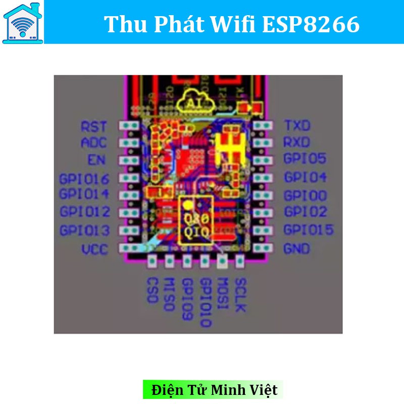 - ESP8266-V12 là phiên bản ESP có anten liền được tối ưu hóa hơn nên tăng khả năng thu phát sóng wifi.