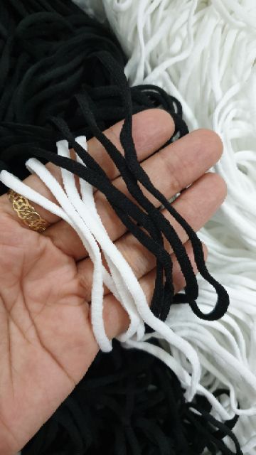 Loại 5mm cọng dẹp, dày dặn co giãn vừa nhưng mềm mịn, thích hợp may khẩu trang vải