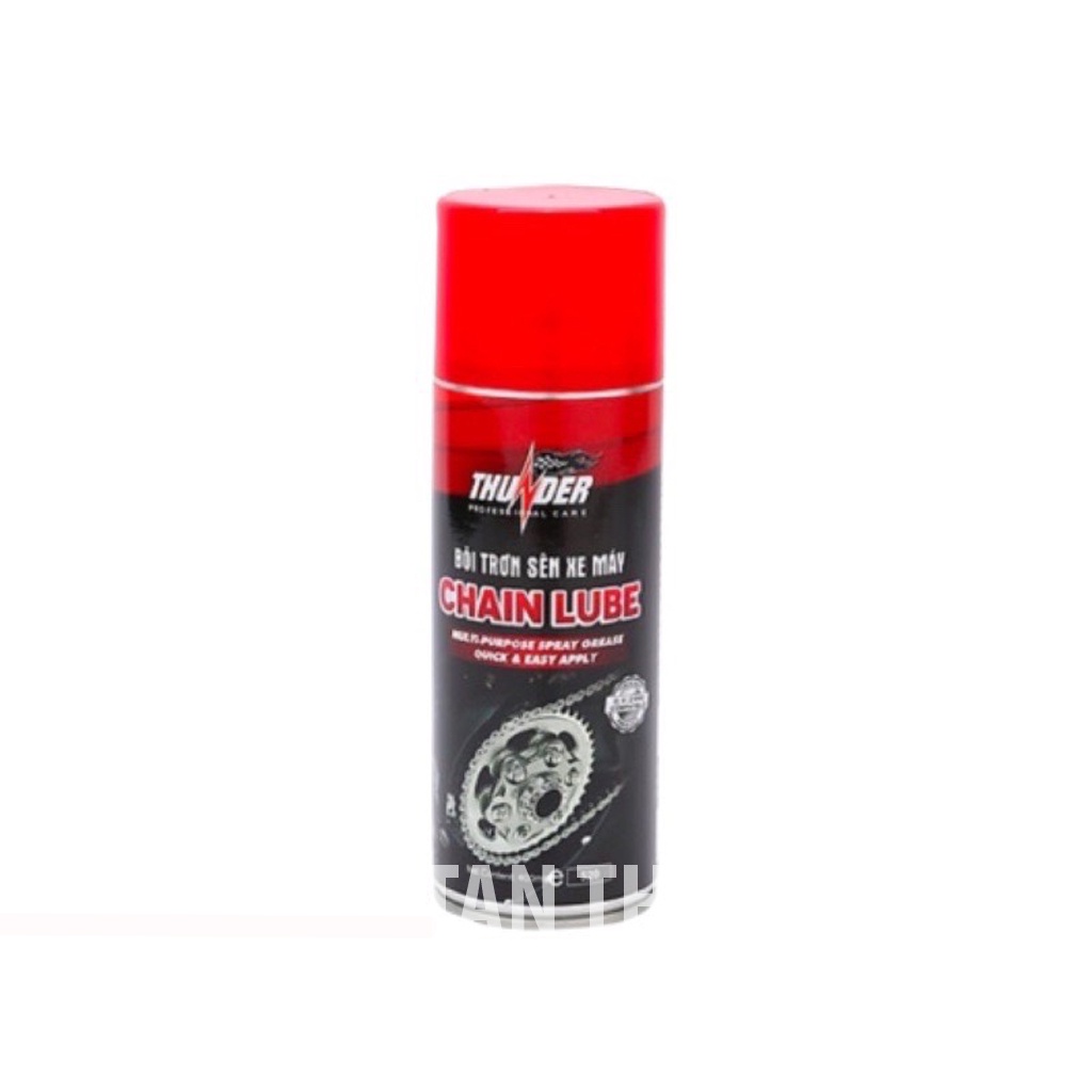 - Sản phẩm Thunder Chain Lube được thiết kế đơn giản dễ sử dụng, giúp sợi sên vận hành êm ái trên mọi nẻo đường, đồng thời việc bôi trơn sên đúng lúc & liên tục giúp sên giảm hao mòn, gia tăng tuổi thọ sên và giảm chi phí bảo trì bảo dưỡng chiếc xe của bạn.