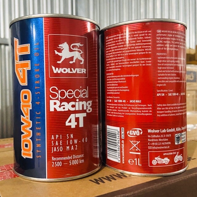 WOLVER SPECIAL RACING 4T 10W-40 SNĐược sản xuất tại Đức bởi tập đoàn Wolver Lab, được pha chế từ 100% dầu gốc tổng hợp Synthetic với hệ phụ gia thiết kế chuyên dụng cho động cơ xe máy 4 thì, bao gồm cả động cơ xe số và xe tay ga thích đi phượt.
