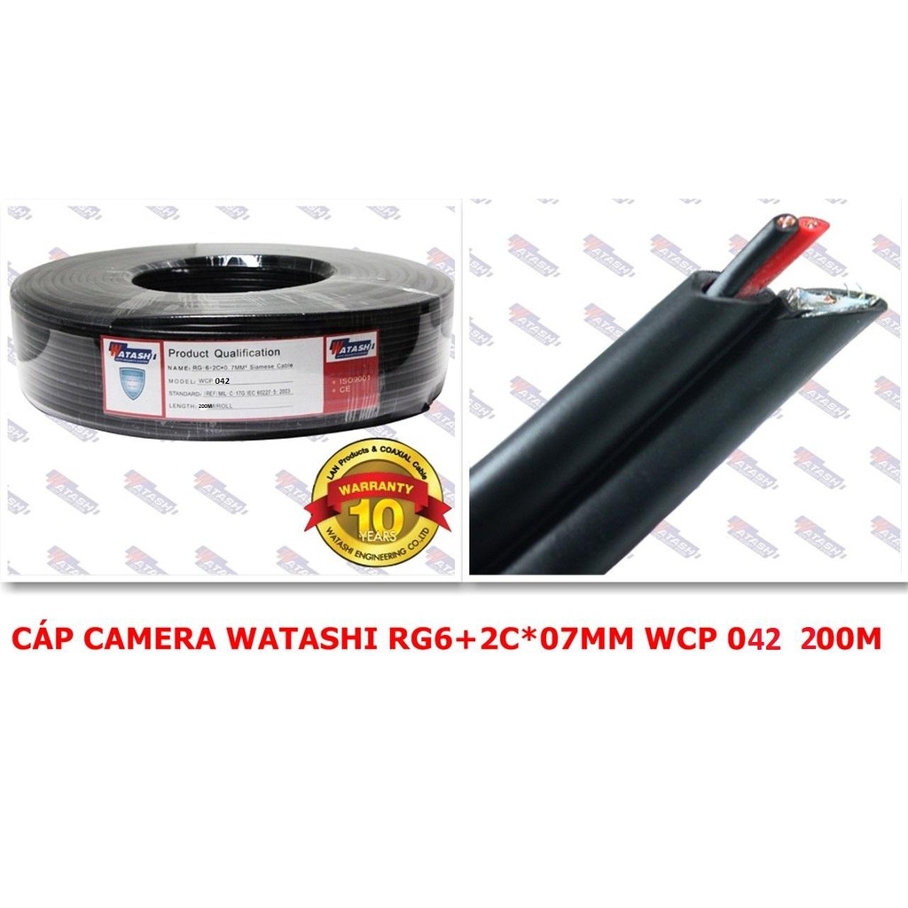 Thùng cáp Camera Watashi RG6 + 2c 100m WCP 071) cáp đồng trục CCTV có nguồn