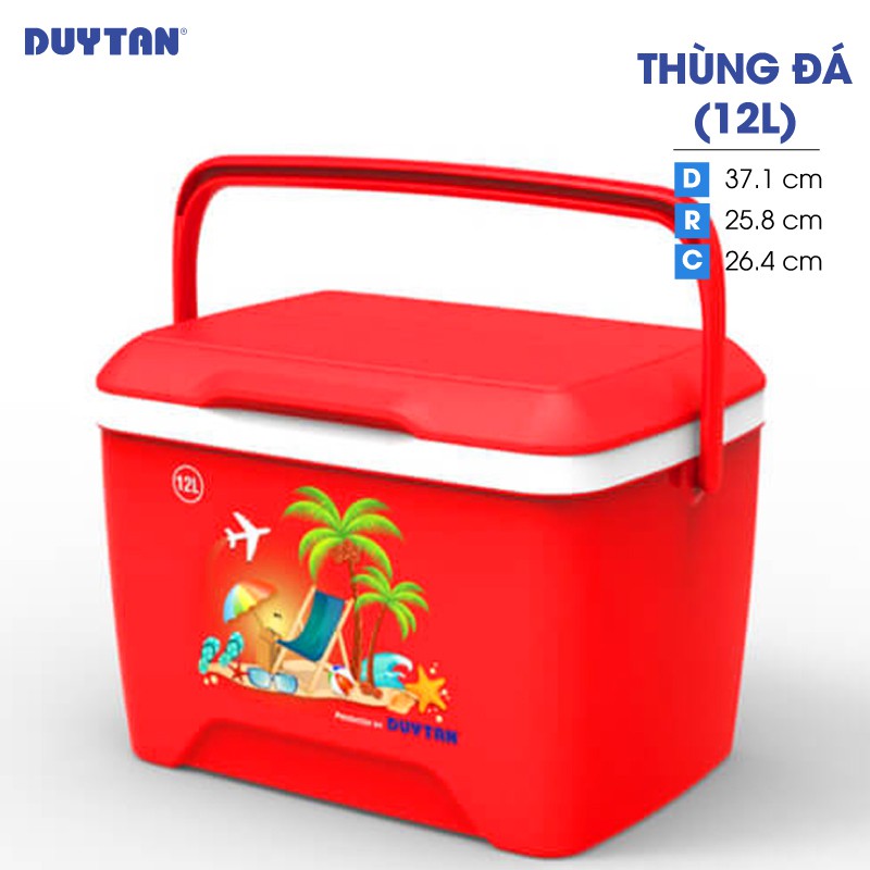 Thùng đá nhựa Duy Tân dung tích 12L - Kích thước 37.1 x 25.8 x 26.4 cmThùng đá nhựa Duy Tân dung tích 12L - No.0238 có kích thước 37.1 x 25.8 x 26.4 cm. Bình được thiết kế có kiểu dáng sang trọng, màu sắc đa dạng, công nghệ PU giữ lạnh cực lâu, vòi xả tiện dụng, phù hợp để sử dụng tiệc trong nhà hoặc ngoài trời, đi du lịch..