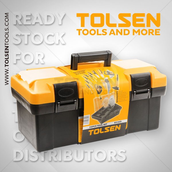 Nhà cửa & Đời sống > Dụng cụ & Thiết bị tiện ích > Dụng cụ > Hộp dụng cụ cầm tay || Thùng đồ nghề tổng hợp 26 món Tolsen 85360Còn hàng
