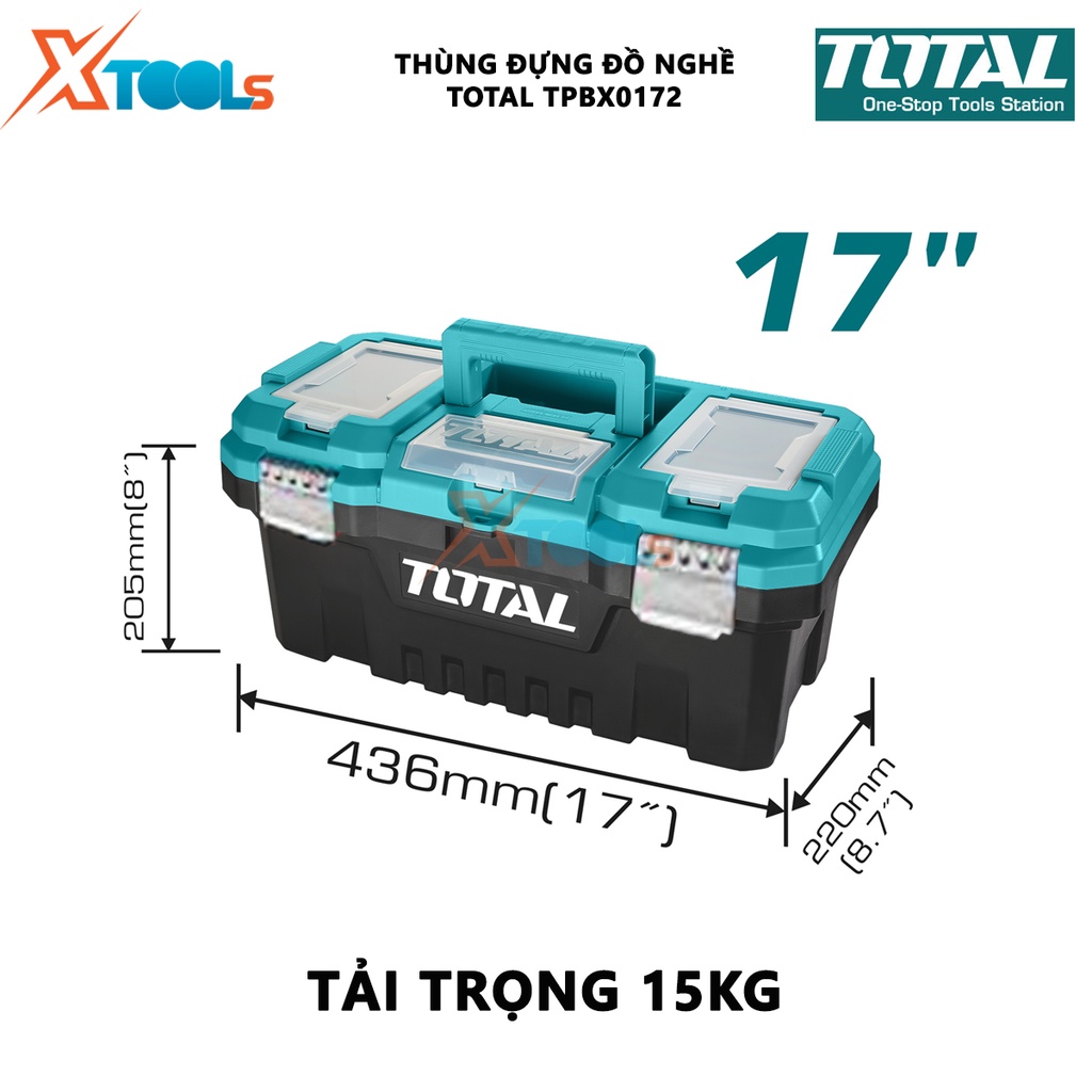 Thùng đựng đồ nghề TOTAL TPBX0172 | thùng đựng đồ nghề khóa nhựa tải trọng 15KG kích thước 436mm(17")*220mm(8.7")*205mm(