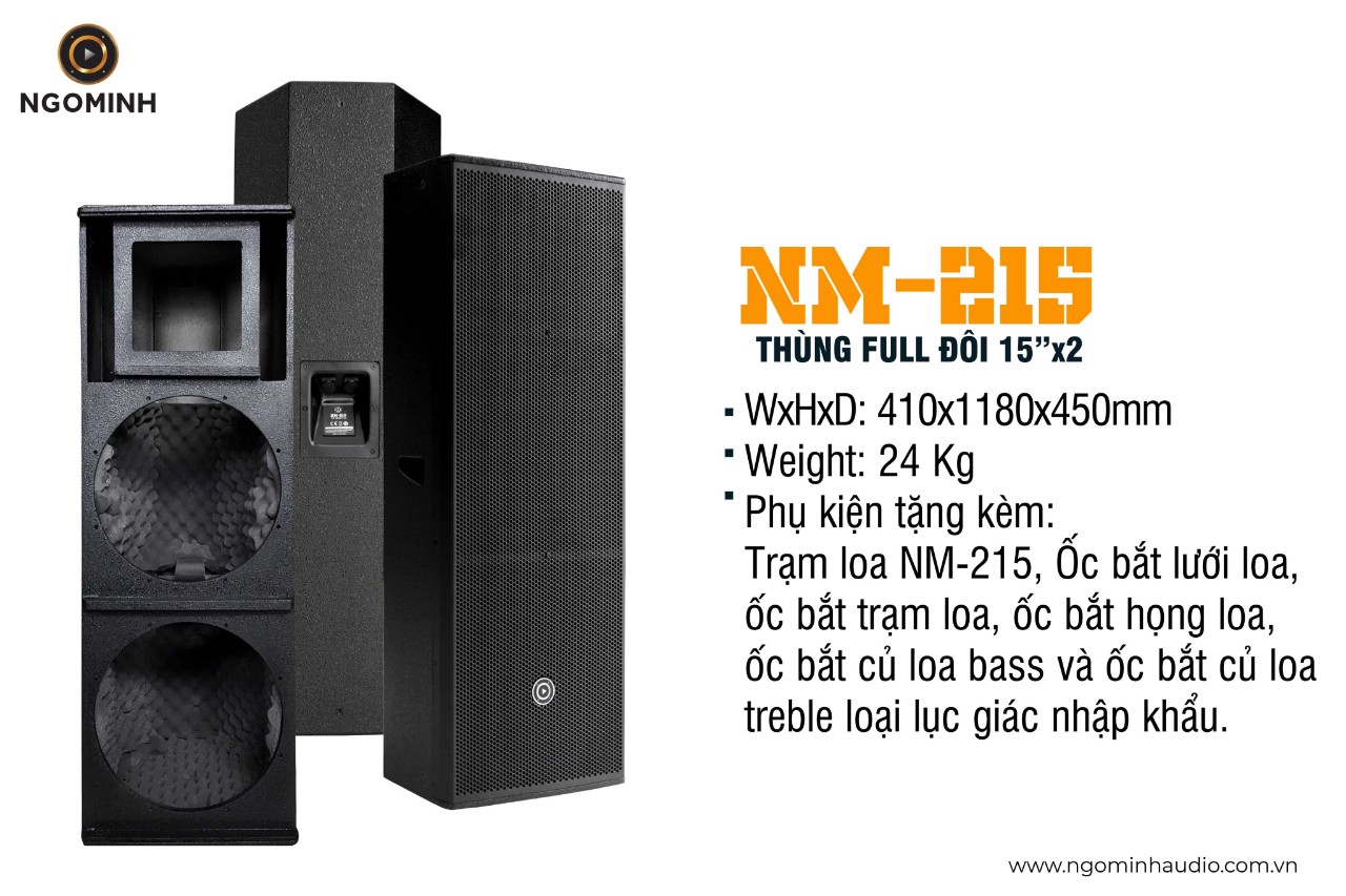 THÙNG FULL ĐÔI 4 TẤC NM-215Thông số kỹ thuật:+ Kích thước: Chiều cao: 1180 mmChiều rộng: 410 mmChiều sâu: 450 mm+ Kết nối: 2 x Speakon NL4 + Cân nặng: 33kg+ Đi kèm: Trạm Loa NM-215, ốc bắt lưới, ốc ...- Giao hàng toàn quốc