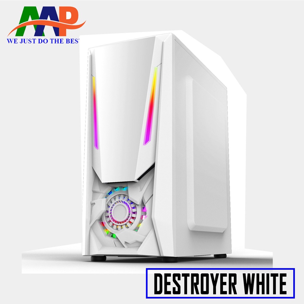 CASE AAP DESTROYER Black-White GAMING LED RGBCASE AAP DESTROYER Black/White GAMING LED RGB với thiết kế bằng nhựa ABS cao cấp cùng dảy led RGB giúp thùng máy của bạn trở nên đẹp mắt và rực rỡ nhưng cũng vô cùng sang trọng tinh tế khi để trong phòng làm việc, học tập.
