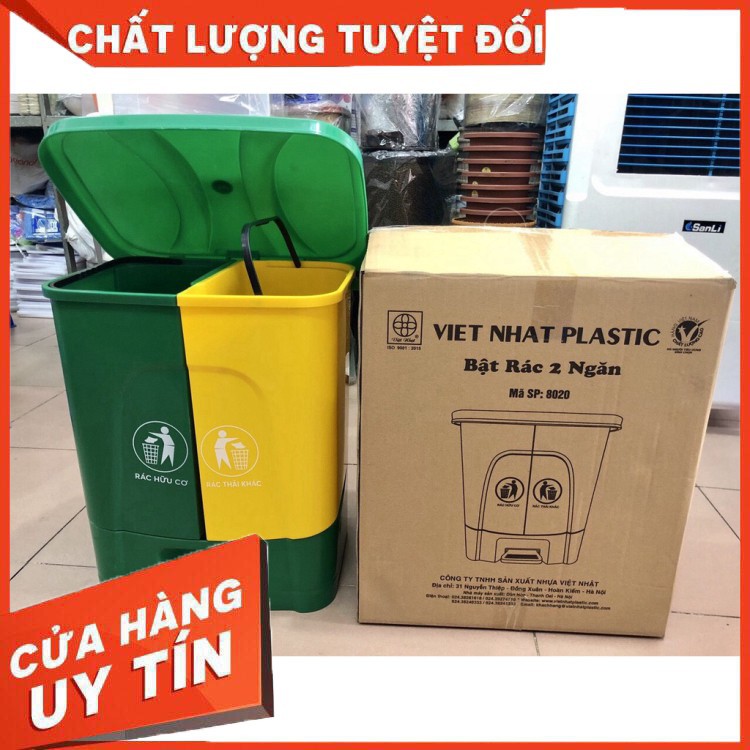 THÙNG RÁC NẮP BẬT 2 NGĂN CỠ LỚN 40L NHỰA VIỆT NHẬT MS-8020Thùng rác nhựa đạp chân 2 ngăn phân loại rác: