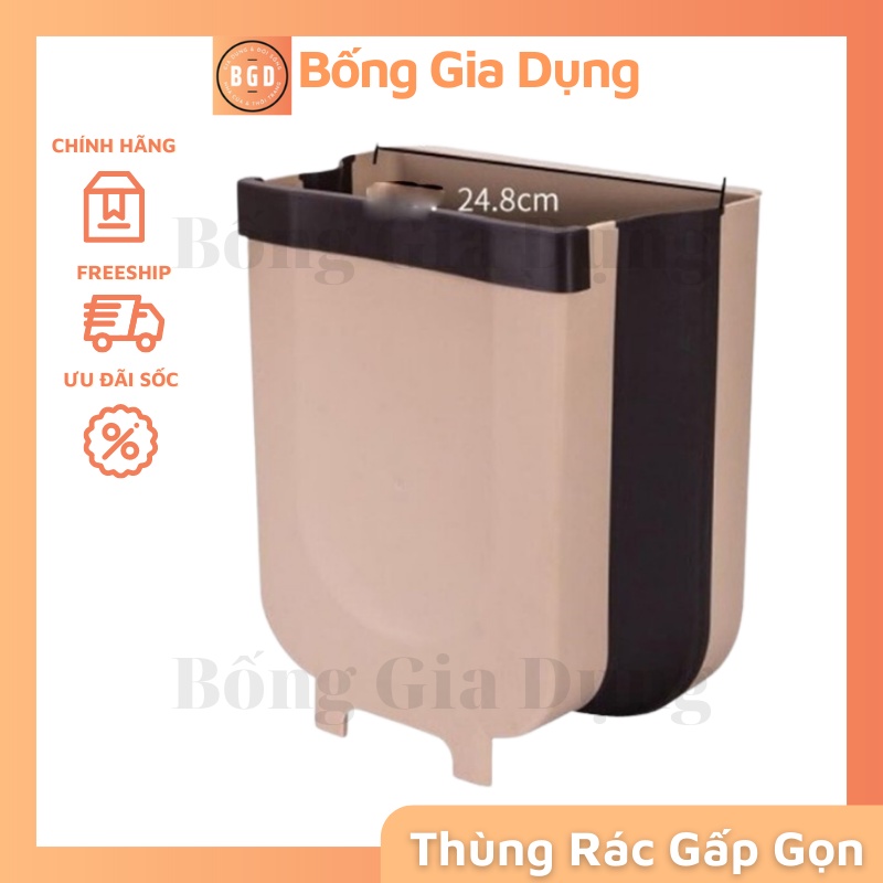 Thùng Rác Cánh Tủ Gấp Gọn Thông Minh Bằng Nhựa Dẻo Màu Nâu- Thùng rác duy nhất hiện nay có thể gấp gọn, có móc cài treo và di chuyển mọi nơi bạn muốn.