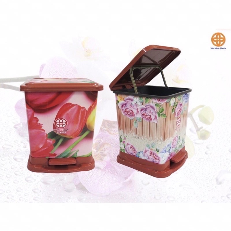 Thùng Rác Đạp Chân - Bật Rác Việt Nhật Hình Vuông-Hoa Văn Ngẫu Nhiên