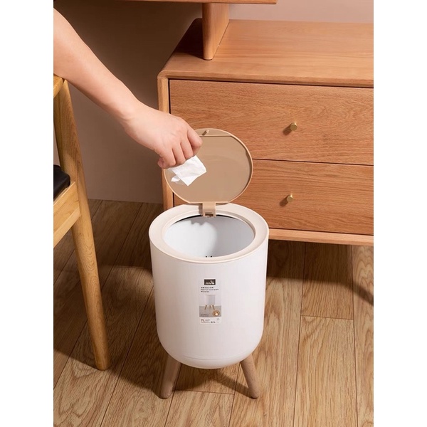 Nhà cửa & Đời sống > Dụng cụ chăm sóc nhà cửa > Thùng rác || Thùng rác Decor thông minh phong cách Hàn Quốc 7L có chân trụ | Thùng đựng rác đa năng nắp ấn mặt gỗ tre cao cấpCòn hàng