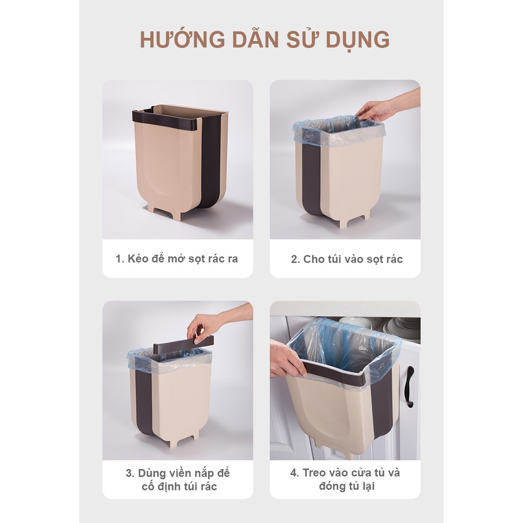 Thùng rác gấp gọn giúp tiết kiệm không gian, có thanh gạt rác, di động