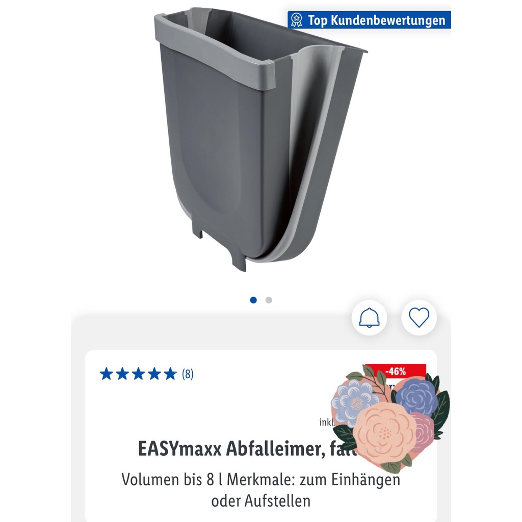 THÙNG RÁC GẤP GỌN TREO TỦ 8 lit EasyMaxx nội địa Đức - thùng rác thông minh thế hệ mới- Thùng rác duy nhất hiện nay có thể gấp gọn khi ko sử dụng và mở rộng khi dùng, có móc cài treo và di chuyển mọi nơi bạn muốn.