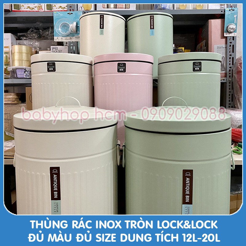 Thùng rác inox tròn Lock&Lock dung tích 3L 5L 6L 12L 20L BYP101 BYP102 BYP103 BYP104 BYP106 BYP122 BYP124 BYP125 BYP126