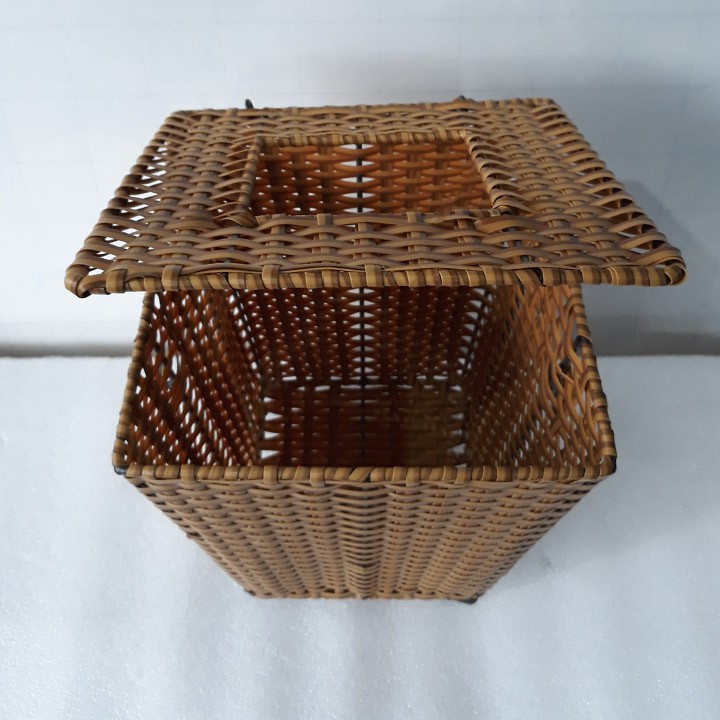 Thùng rác mây, Sọt rác mây vuông vát đáy MTGM23 (vàng mây) vuông 20cmxcao 28cm.