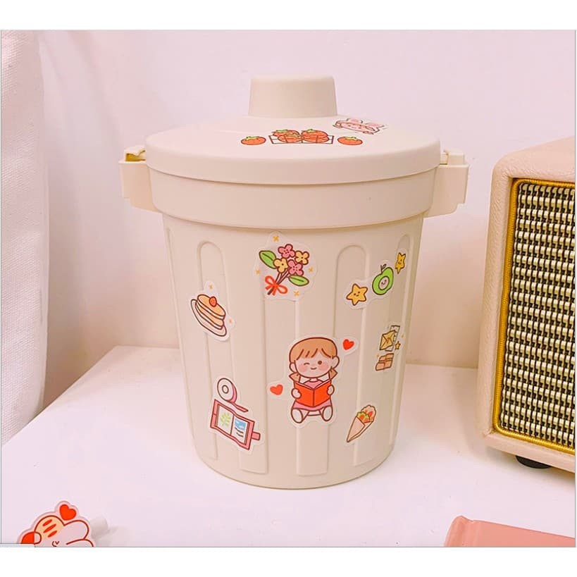 Thùng rác mini để bàn, sọt rác mini để bàn có nắp đậy cute tiện lợi (kèm sticker)