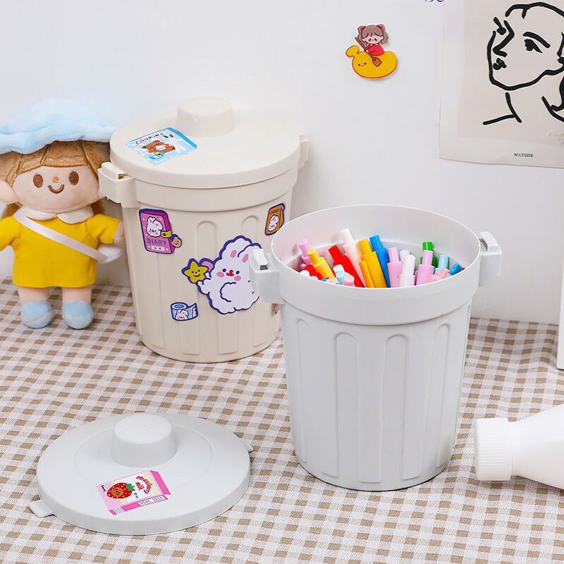 Thùng Rác Mini❤️FREESHIP❤️Thùng Rác Có Nắp, Để Bàn Làm Việc, Hình Chiếc Xô Nhỏ Dể Thương Cực HOT
