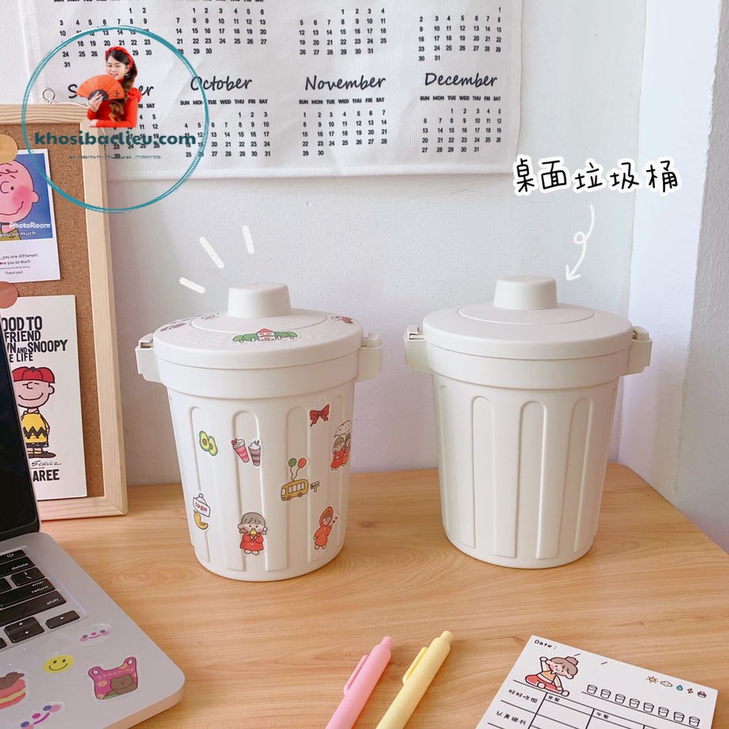 Thùng rác mini, hộp đựng nhỏ hình chiếc xô để bàn học bàn làm việc có nắp đậy tiện lợi 2 màu ghi và trắng