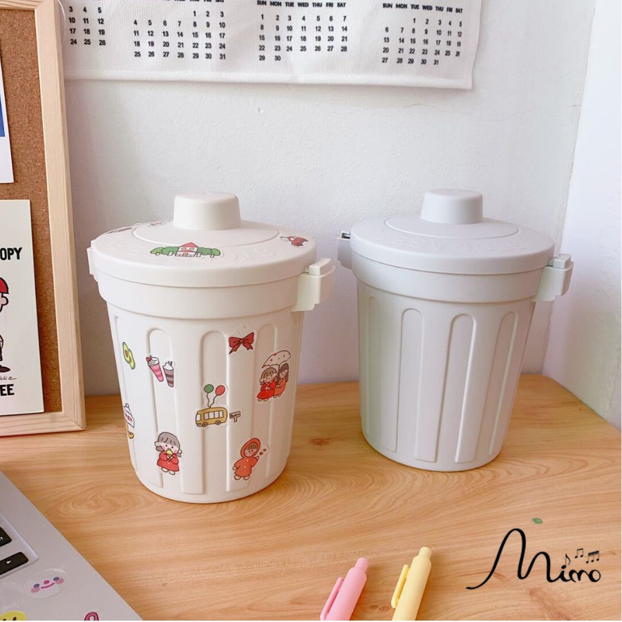 Thùng rác mini, hộp đựng nhỏ hình chiếc xô để bàn học bàn làm việc có nắp đậy tiện lợi 2 màu ghi và trắng