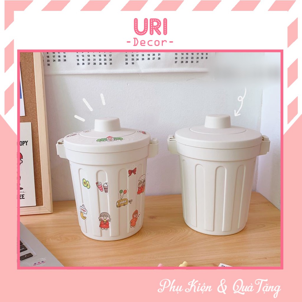 Thùng rác mini mô hình chiếc xô có nắp đậy hộp quà tặng sẵn 2 màu trang trí góc học tập , bàn làm việc URI DECOR