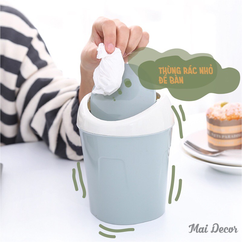 Thùng rác mini nắp bật để bàn tiện lợi đa năng phong cách Hàn Quốc