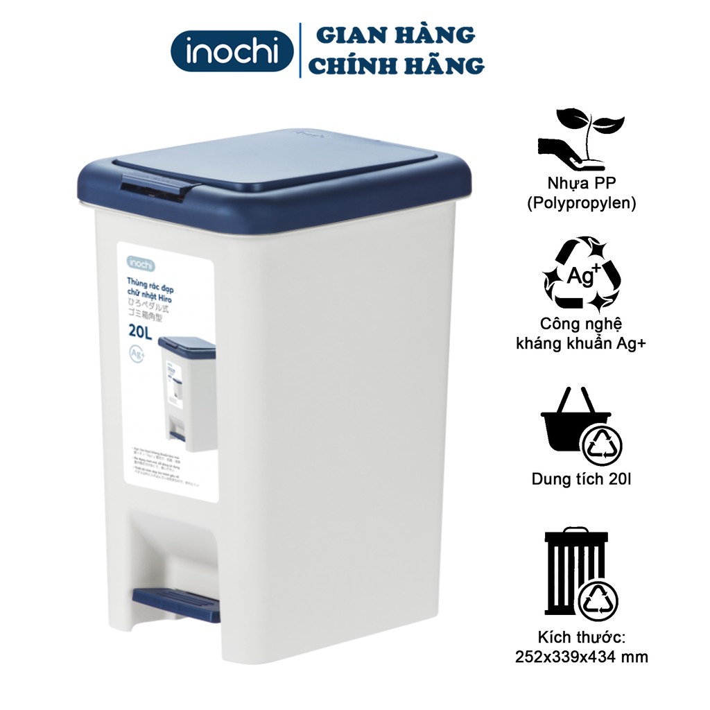 Giới thiệu Thùng Rác -Nhựa Đạp Chân Nắp Đậy Chữ Nhật INOCHI 20 Lít Làm Sọt Rác Văn Phòng,Đựng Rác Gia Đình
