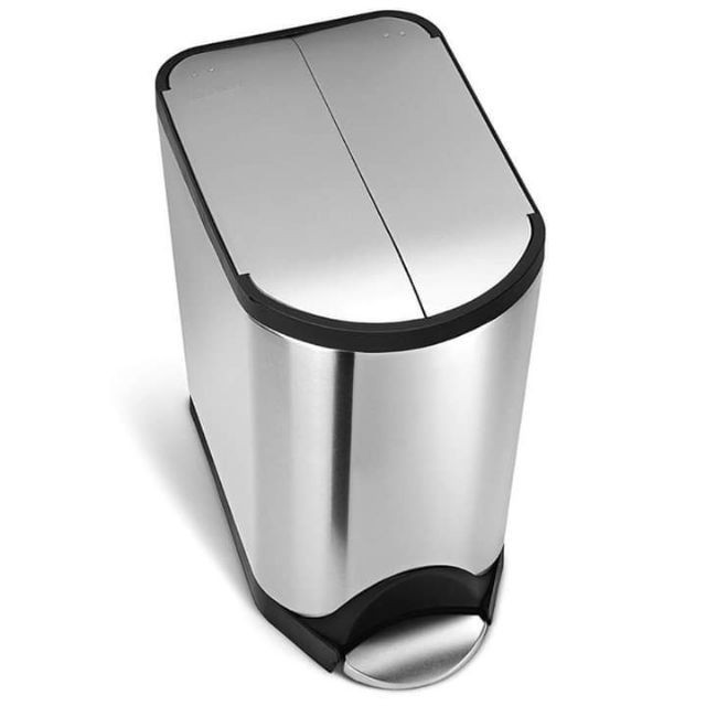 Thùng rác Simple Human mở 2 cánh 10LThùng rác Simple Human mở 2 cánh 10L dung tích 10L có thiết kế 2 NẮP sáng tạo mở ra từ trung tâm để có khoảng trống tối đa dưới mặt bàn thấp. Hình dáng mỏng, tiết kiệm diện tích, tận dụng tối đa không gian chật hẹp. Thùng rác thông minh SimpleHuman có bàn đạp thép mạnh mẽ và công nghệ nắp đậy đã được cấp bằng sáng chế đảm bảo lon sẽ hoạt động trơn tru và yên tĩnh trong nhiều năm. Lớp lót mã K của chúng tôi hoàn toàn phù hợp với chiếc hộp này - không bó hoặc trượt để có trải nghiệm thùng rác sạch hơn.