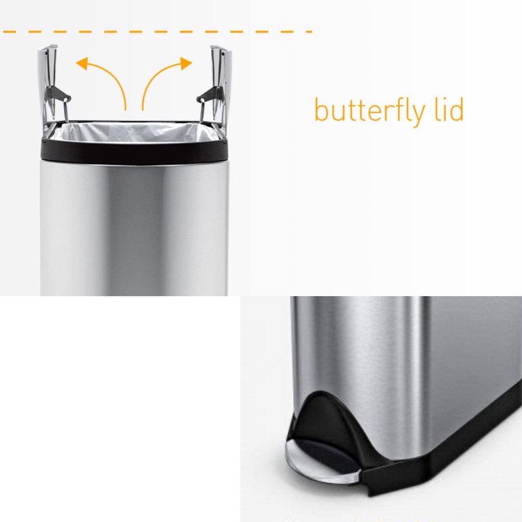 Thùng rác SimpleHuman cánh bướm 10L - KHÔNG BÁM VÂN TAY - suốt ngày sáng bóngThùng rác thông minh của Simple Human có thể xếp vào loại thùng rác cỡ vừa phù hợp để chứa rác sinh hoạt gia đình hoặc văn phòng. Thiết kế đẹp, trọng không chỉ phù hợp với phong cách nội thất gia đình hiện đại mà còn cả ở công sở/văn phòng. Lớp vỏ ngoài được làm bằng thép không rỉ trong khi đế thì bằng nhựa cứng.