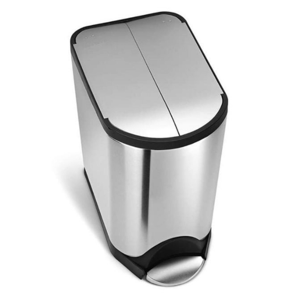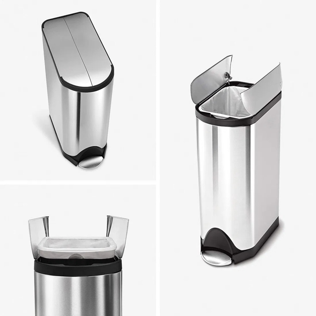 Thùng rác SimpleHuman cánh bướm dung tích 10L có thiết kế nắp bướm sáng tạo mở ra từ trung tâm để có khoảng trống tối đa dưới mặt bàn thấp. Hình dáng mỏng, tiết kiệm diện tích, tận dụng tối đa không gian chật hẹp.