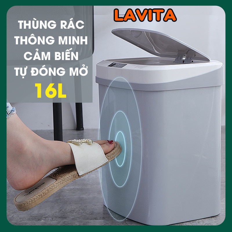 Thùng rác thông minh cảm biến tự đóng mở nắp - Dùng pin sạc - LAVITA
