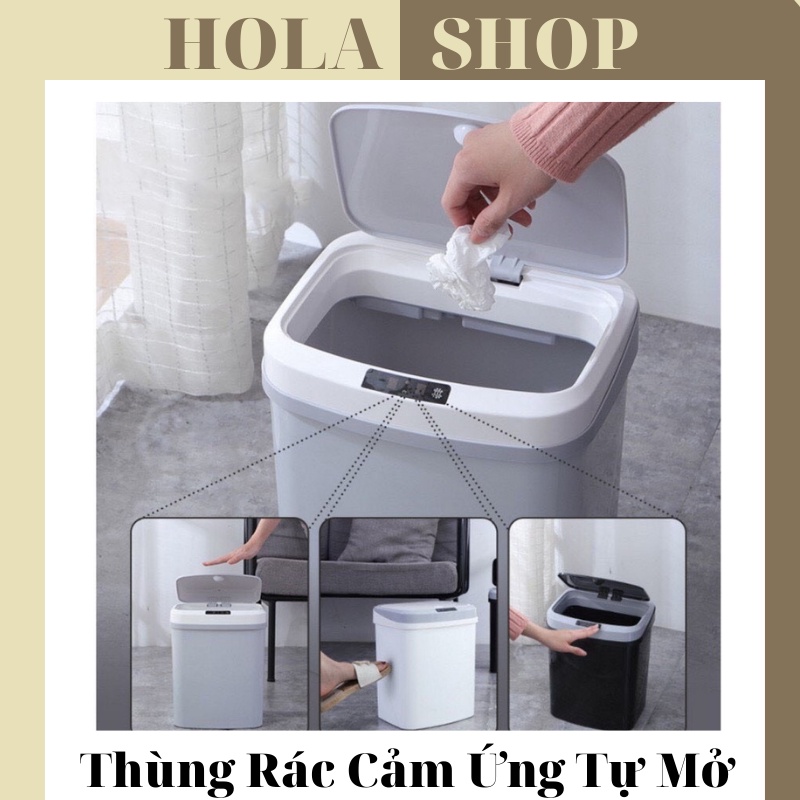 HOLA SHOP Giới Thiệu Sản Phẩm⚡Thùng rác CẢM ỨNG thông minh cao cấp- Có nắp đóng mở tự động, sạc USB- Thể Tích 15L!