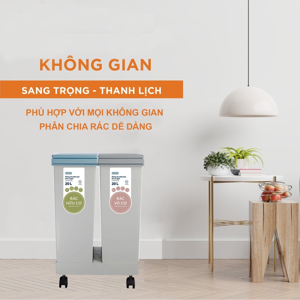 Nhà cửa & Đời sống > Dụng cụ chăm sóc nhà cửa > Thùng rác || Thùng rác thông minh HIRO INOCHI 2 Ngăn bấm nút tự động mở nắp phân loại rác cho phòng khách, phòng ngủ,vệ sinh RAPL.002Còn hàng