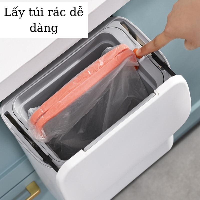 Thùng rác treo tủ bếp có nắp đậy thùng rác dán tường nhà vệ sinh dung tích 9 lít