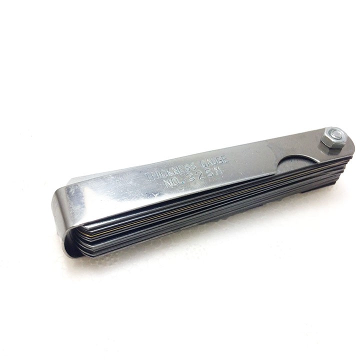 Thước căn lá 0.02-1.0mm, bao gồm 32 lá.-Chiều dài lá 89mmCó nhiều cách gọi khác nhau của loại dụng cụ đo khe hở này như thước lá, thước căn lá (vì nó như cái lá cây), thước nhét (dùng nhét vào khe hở).v.v Ở đây ta gọi chung là thước căn lá hay thước lá dùng để căn đo khe hở