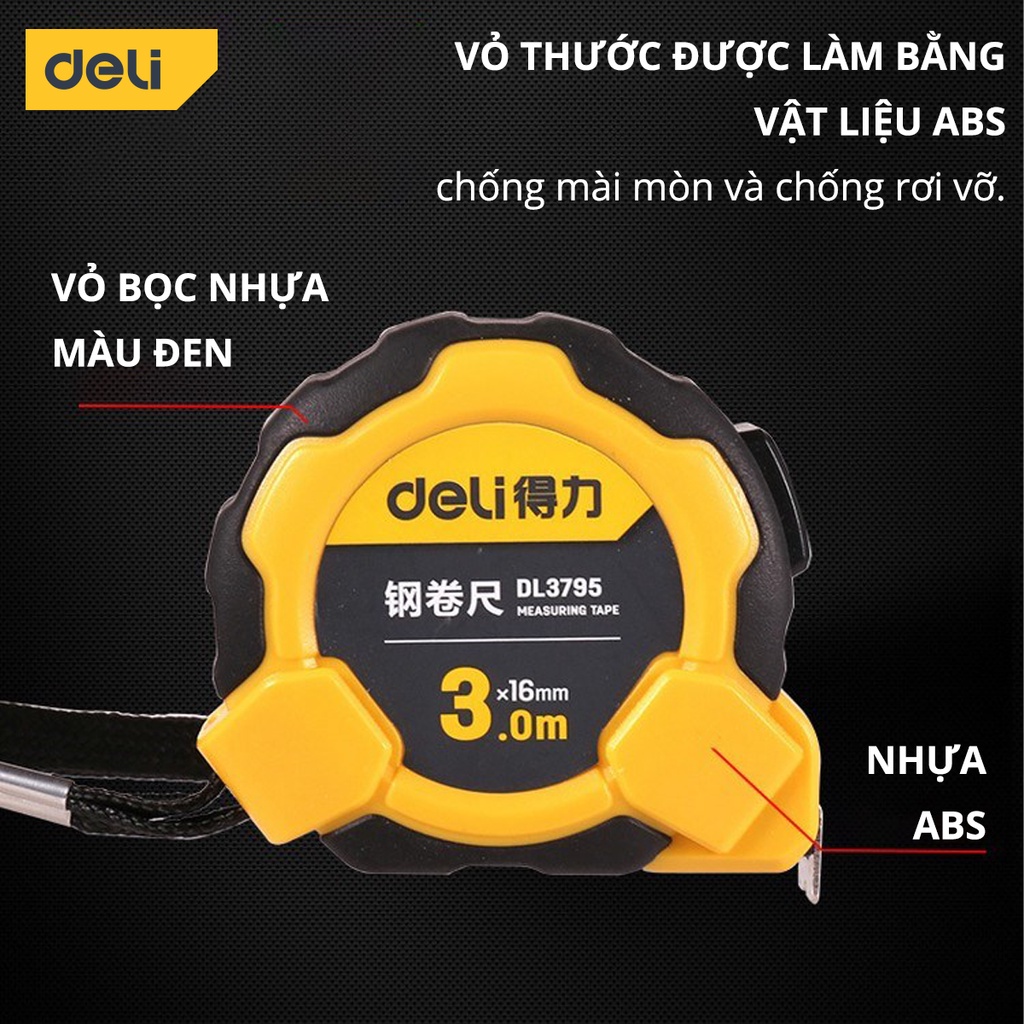Nhà cửa & Đời sống > Dụng cụ & Thiết bị tiện ích > Dụng cụ > Dụng cụ đo lường || Thước Cuộn Thép Deli Cao Cấp Chính Hãng Đủ Size - Chất Liệu ABS Bọc Cao Su Chắc Chắn Chống Va Đập - DL3796 / EDL9003BCòn hàng