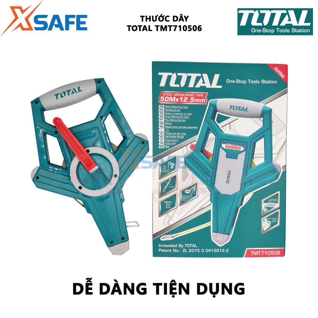 Thước cuộn thép TOTAL TMT710506 Thước kéo thép chiều dài 50m, bề rộng lá thước 12.5mm, đo lường, đo đạc chính xác -XSAFE