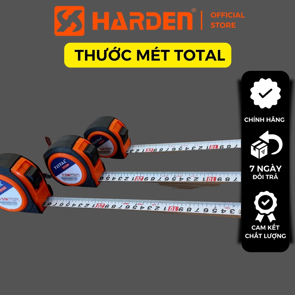 * GIỚI THIỆU THƯỚC CUỘN THÉP TOTAL- Thước cuộn thép nền vàng TOTAL là sản phẩm giúp đo khoản cách xa một cách dễ dang và thuận tiện, có chức năng thu và giữ lại giúp việc đo được chính xác đến từ cm, là dụng cụ không thể thiếu của mỗi người thợ trong việc đo cơ bản đến đo chuyên nghiệp, được sử dụng nhiều trong các công trình xây dựng, nhà máy, gia đình, sửa chữa, lắp đặt...., sản phẩm có kích thức nhỏ gọn, bạn có thể dễ dàng mang đi và sử dụng một cách linh hoạt và thuận tiện, thước có thể kéo dài đến 10m giúp việc đo xa khoảng cách được thuận tiện hơn. Được làm bằng chất liệu cao cấp có khả năng chịu lực, chịu nhiệt, chịu được va đập mạnh, chống rỉ sét ở môi trường ẩm ướt, có tuổi thọ cao khi sử dụng cẩn thận.