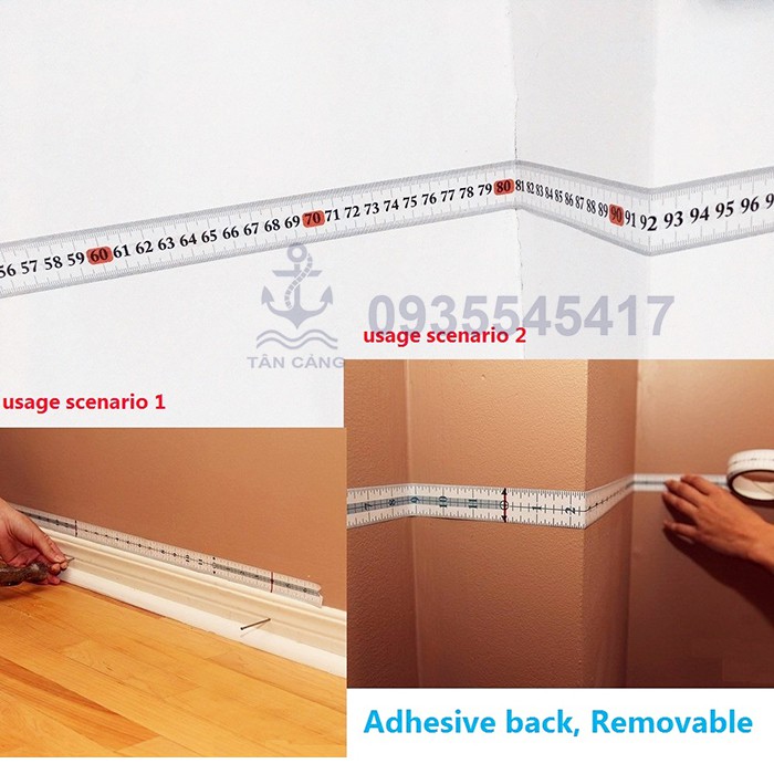 - Thước dán gắn dễ dàng trên máy móc, bàn làm việc, cột vuông,...- Cho phép cắt các phần không mong muốn của băng keo.