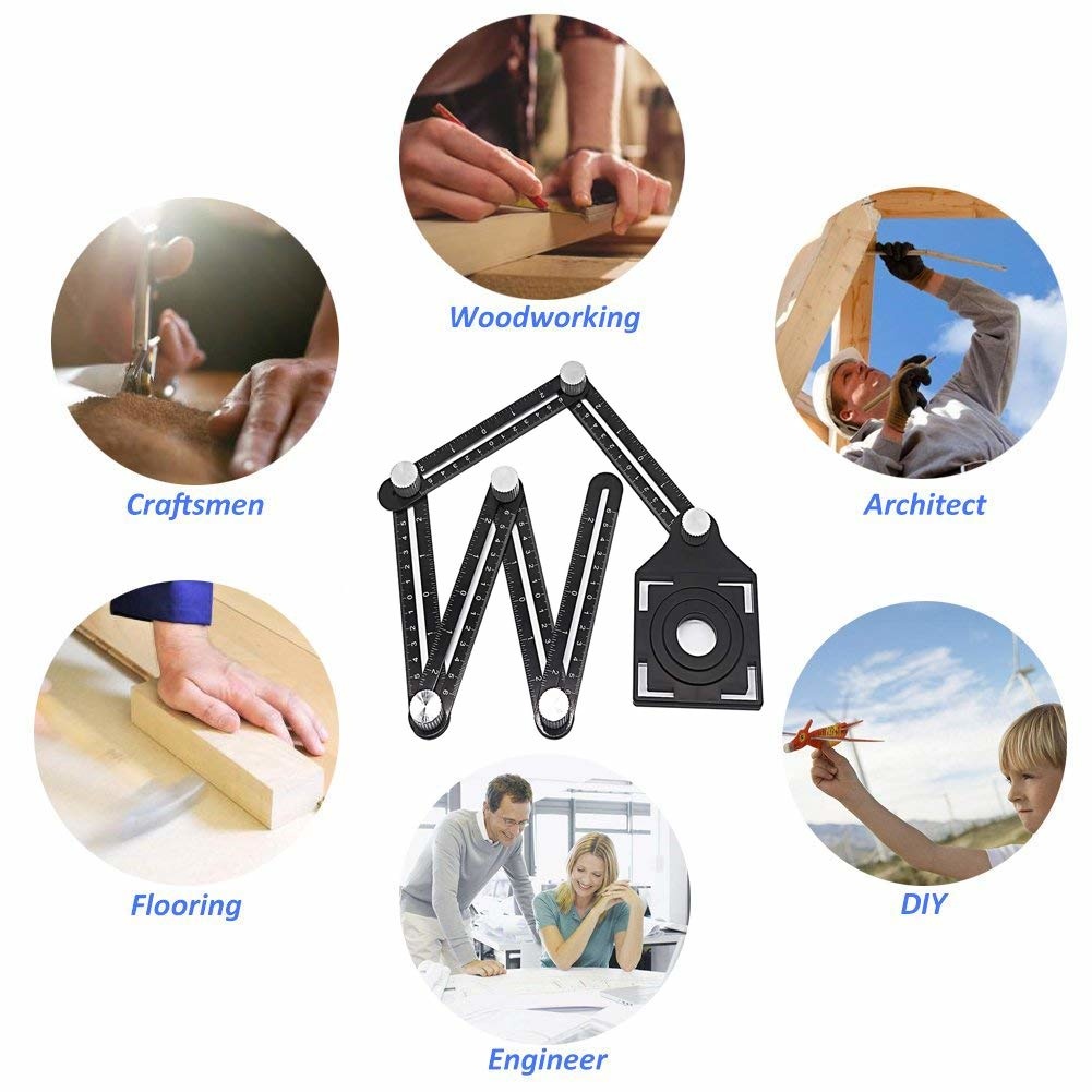 ✔️ Nâng cấp Thước đo góc: Thước đo định vị có sáu mảnh và các núm kim loại với dụng cụ mở lỗ định vị gạch, bạn có thể điều chỉnh sáu núm kim loại để tạo hình dạng mong muốn một cách chính xác. Với khả năng gập 6 cạnh, người dùng có thể dễ dàng tạo và đo các góc hoặc hình dạng đặc biệt bằng công cụ tìm góc để nâng cao hiệu quả công việc.