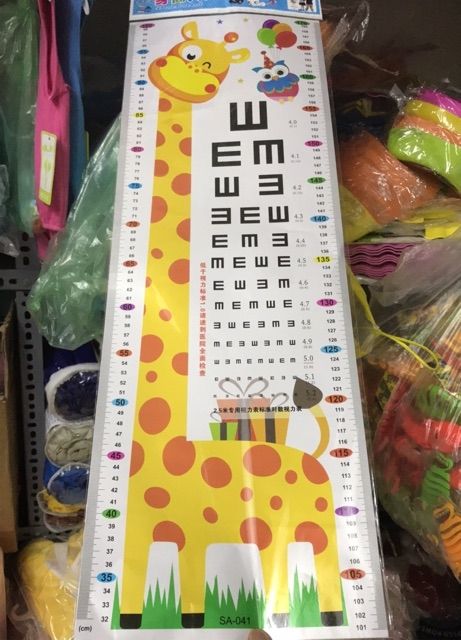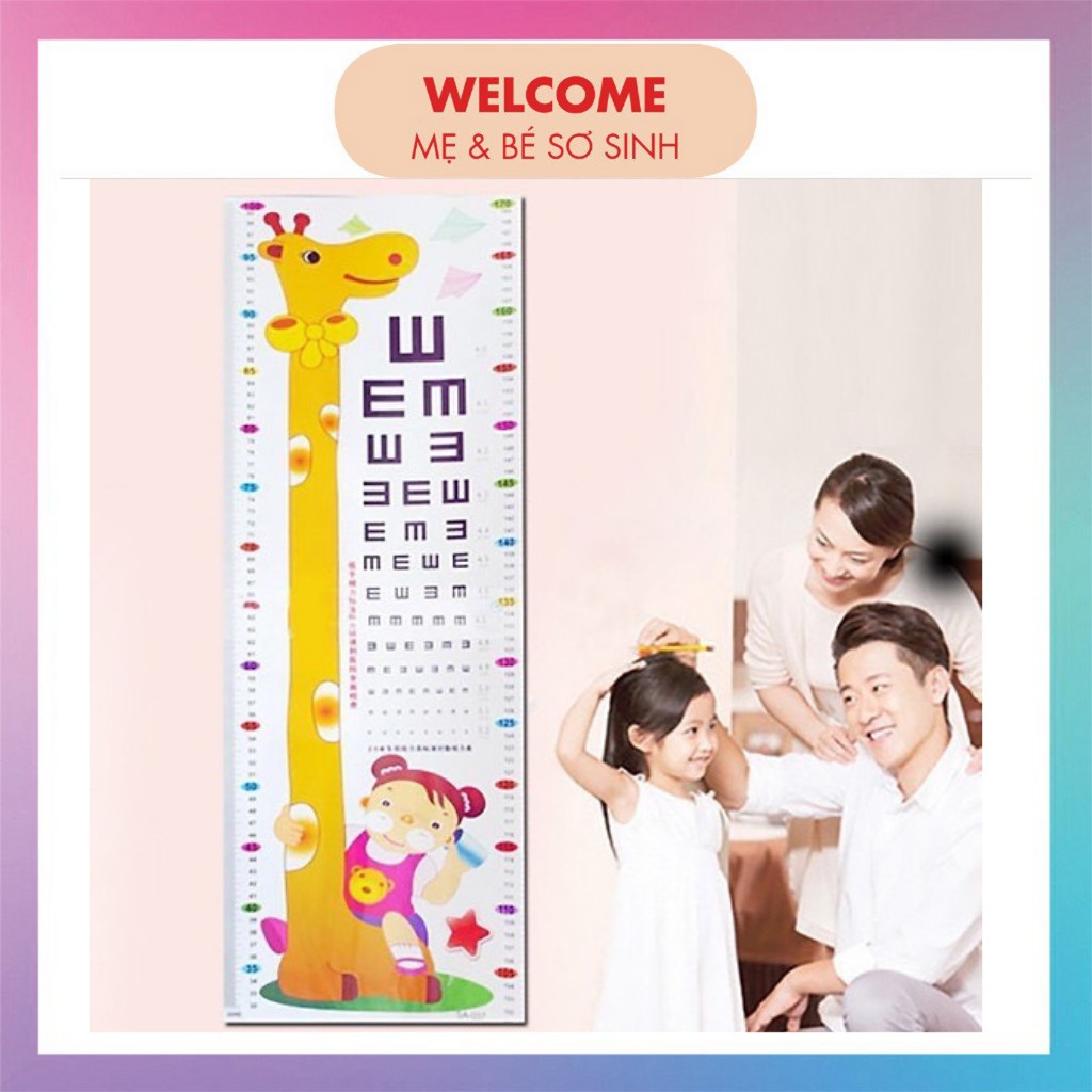 + Trên thước có các mức chiều cao cố định cùng với khung đo giúp bạn biết được chính xác chiều cao hiện tại của bé yêu để có chế đọ ăn uống và hoạt động cho phù hợp với sự phát triển của bé. các mẫu đo chiều cao này được trang trí hình thù thật lạ mắt, thừ những nhân vật hoạt hình ngộ nghĩnh như chú gấu Pooh, hươu cao cổ,... đến những hình hoa lá và cây cối hết sức sống động. Những thước đo hình động vật, thiên nhiên sẽ giúp bé nhận biết thế giới xung quanh nhanh hơn.
