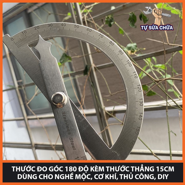 Nhà cửa & Đời sống > Dụng cụ & Thiết bị tiện ích > Dụng cụ > Dụng cụ đo lường || Thước đo góc 180 độ kèm thước thẳng 15cm dùng cho nghề mộc, cơ khí, thủ công, DIYCòn hàng