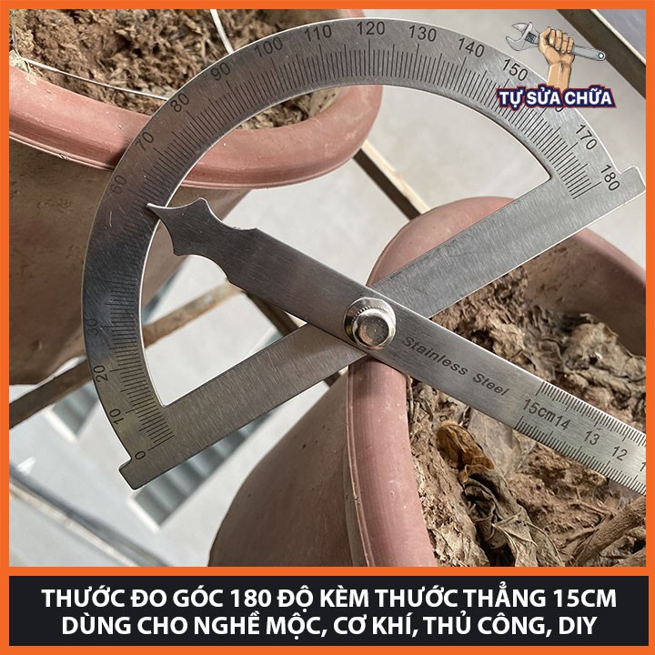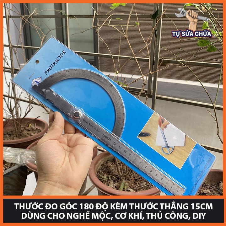 Thước đo góc 180 độ kèm thước thẳng 15cm dùng cho nghề mộc, cơ khí, thủ công, DIY