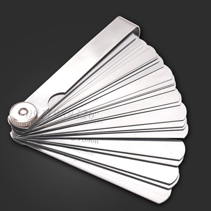 _ Công dụng: đo bề rộng khe hở giữa các chi tiết/bộ phận, ứng dụng trong các lĩnh vực cơ khí, thi công xây dựng, nội ngoại thất..._ Bộ thước bao gồm 32 lá với độ dày khác nhau từ 0.02-1mm (0.0008-0.04inch), cả 2 thông số hệ mét và inch đều được khắc laser rõ nét trên từng lá thước