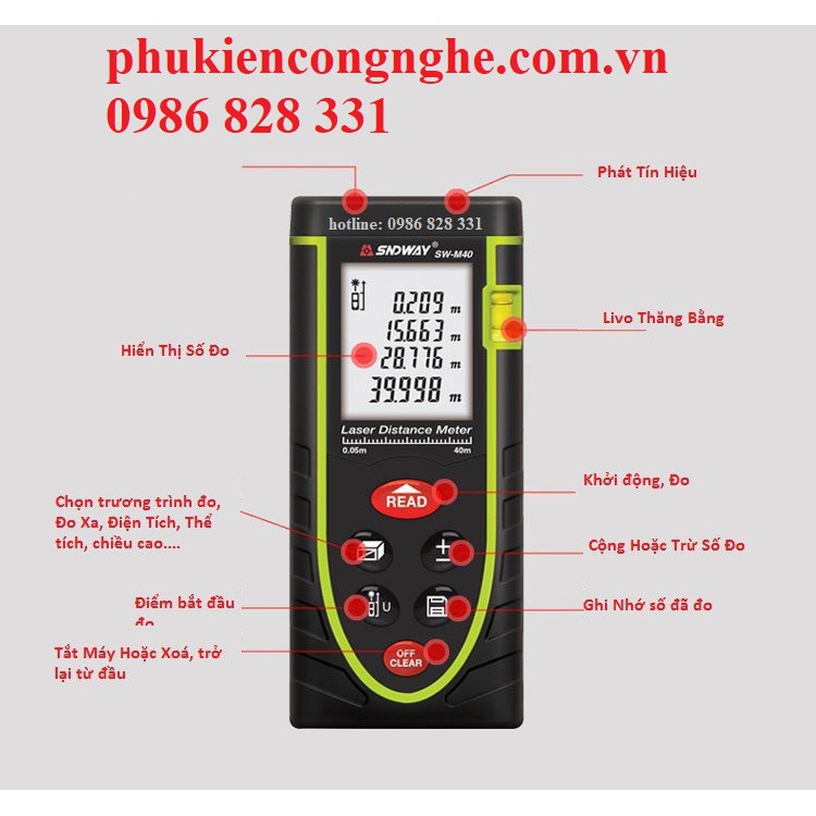 Giới thiệu Thước đo khoảng cách laser SNDWAY SW-M50 phạm vi đo 50M